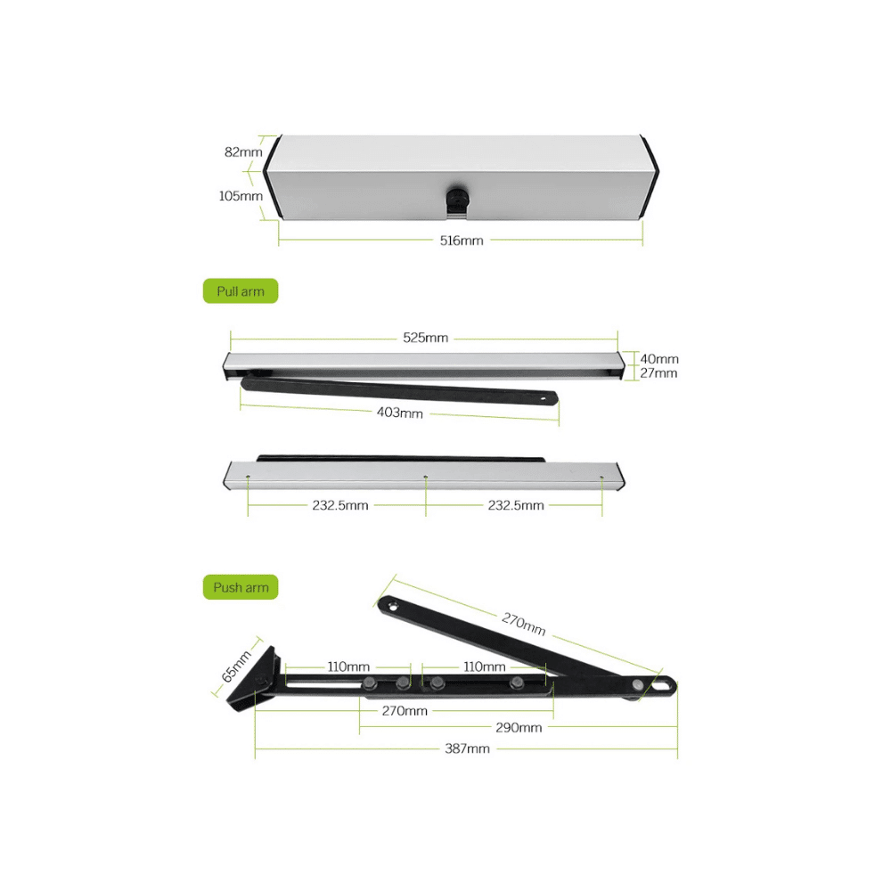 Pole 90 Derece Kapı Motoru Kumandalı Kit, tek kanatlı ve menteşeli (90°) açılan iç mekân kapılarını otomatik hale getirmek için geliştirilmiş kompakt ve verimli bir sistemdir. Özellikle hastane odaları, ofisler, engelli geçiş alanları, oteller ve ortak kullanım alanlarında hem konfor hem hijyen açısından büyük avantaj sağlar.